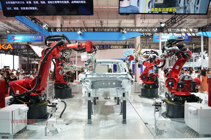 强劲灵活的手腕,高扭矩的设计,4个红色的机械臂上下挥舞,为汽车车身进行点焊作业……在2023世界机器人大会上,沈阳新松益达娱乐针对汽车工业研发的白车身点焊机器人工作站引人注目。