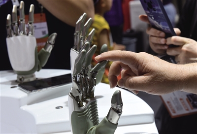 7月6日,观众在体验灵巧机械手。当日,2024世界人工智能大会暨人工智能全球治理高级别会议落下帷幕。记者 黄晓勇 摄