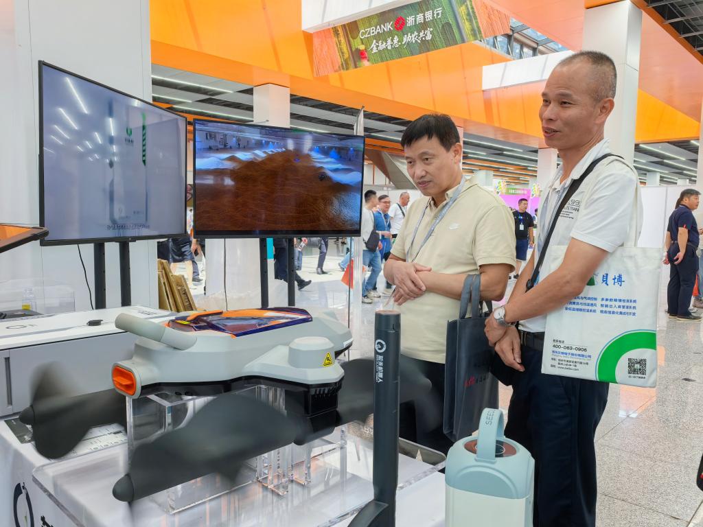 展台前的平仓机器人吸引了不少客商驻足。新华社记者武江民 摄