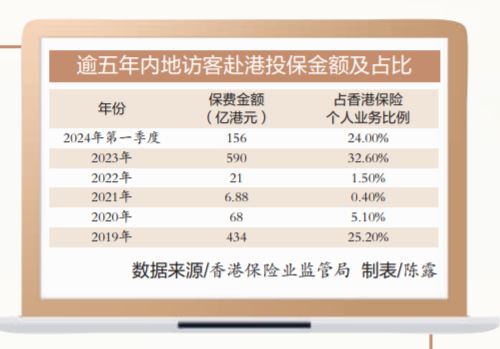 5月31日,香港保监局披露的保险业临时统计数据显示,2024年一季度,毛保费总额为1651亿港元,同比增长12.2%。其中,内地访客新造保单保费为156.26亿港元,占个人业务总新造保单保费24%,较2023年一季度的96.13亿港元增长62.6%。