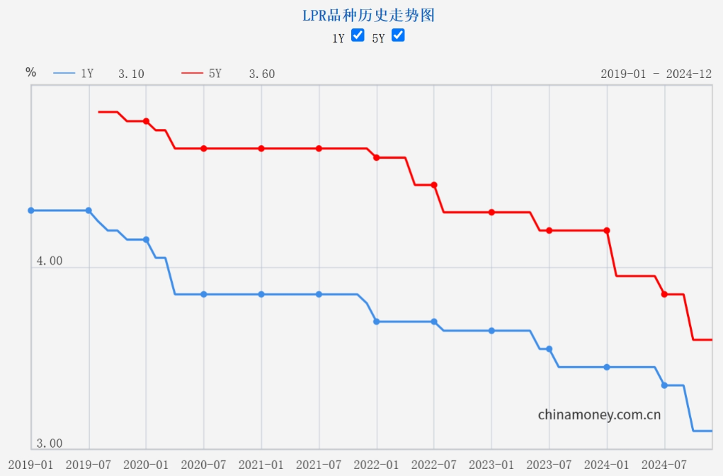 中国人民银行官网发布的贷款市场报价利率(LPR)走势图