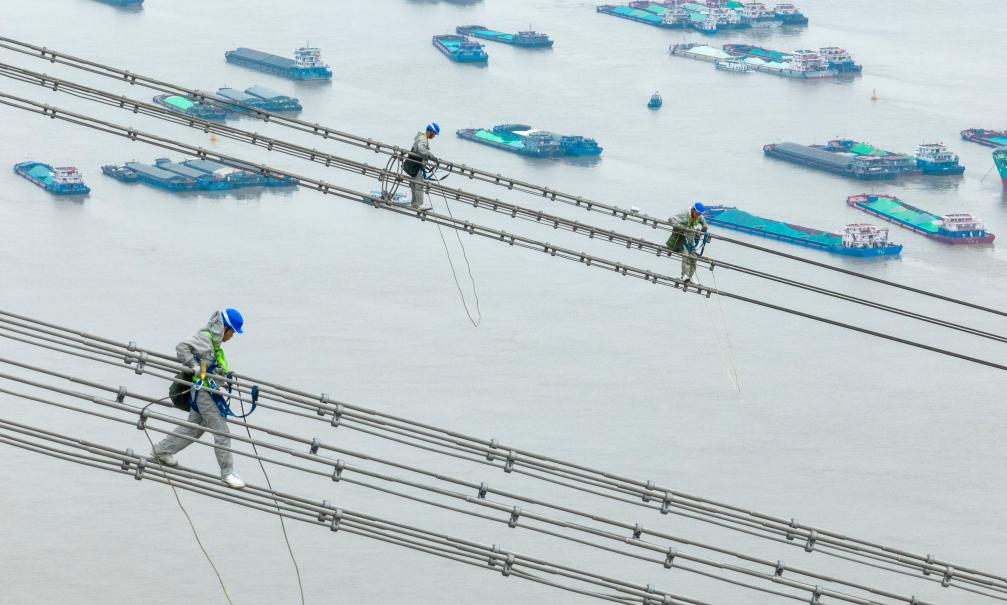 检修工人成功跨越长江
