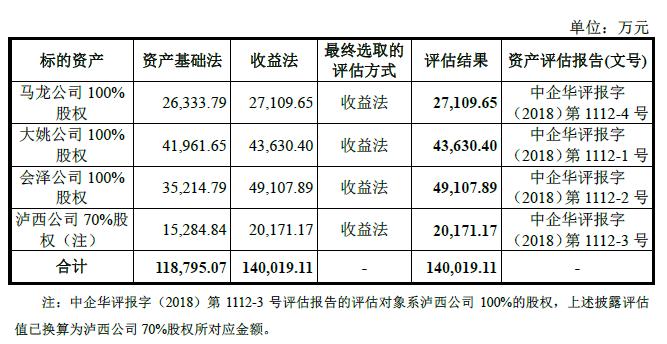 根据中企华出具的评估报告,中企华采用资产基础法和收益法对标的资产在2017年12月31日的市场价值进行了评估,最终采用收益法评估结果作为评估结论,标的资产的评估情况如下表所示: