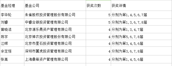 二、股票策略经理奖获奖次数前两名