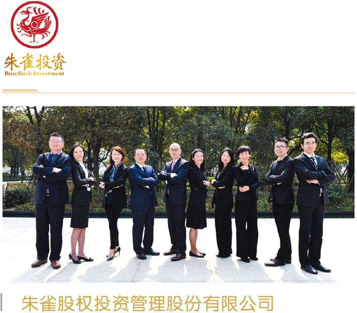 朱雀投资成立于2007年7月,是上海首家有限合伙企业,亦 是中国证券投资基金业协会普通会员和理事单位、中国证券 业协会会员、陆家嘴金融城常务理事单位,管理资产规模保 持私募业前列。在中华传统文化的语境中,朱雀是生生不息 的灵兽,是降福人间的祥瑞。朱雀投资愿做持续创造价值的 “灵兽”,希冀伴随中国资本市场的发展走向强盛。朱雀投 资具备团队、品牌、规模和产品结构优势,已经站上了一个 新的台阶,将努力把握与行业一起再出发的机遇。