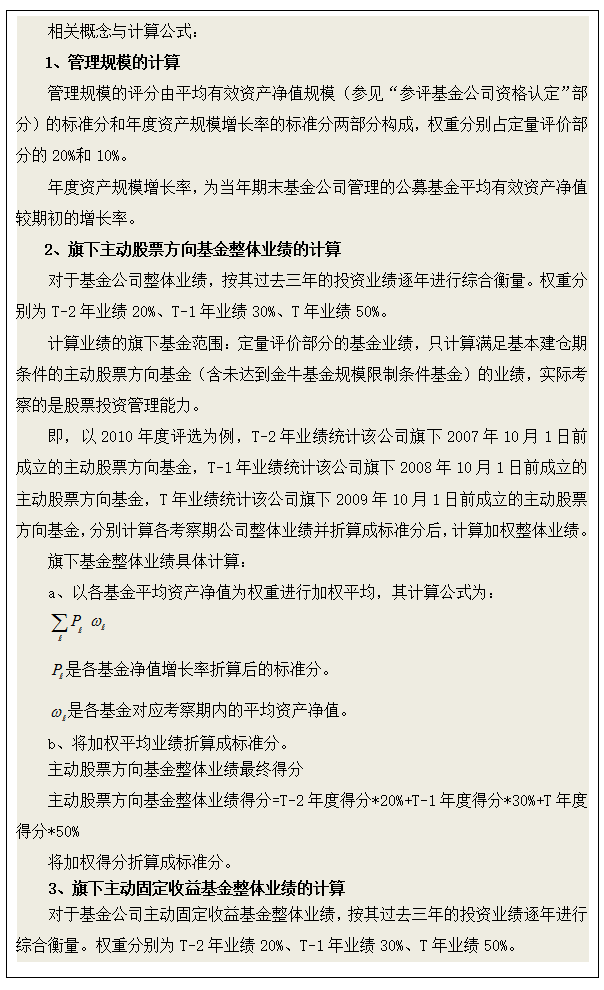 主动股票方向基金整体业绩得分=T-2年度得分*20%+T-1年度得分*30%+T年度得分*50%
