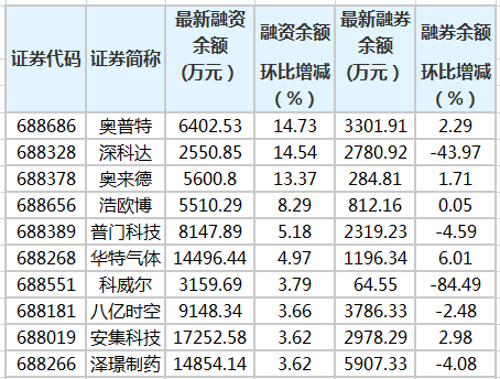 证券时报?数据宝统计显示,3月10日共有83只科创板个股融资余额环比增加。其中,5股融资余额增幅超过5%。融资余额增幅较大的有奥普特、深科达、奥来德等股。