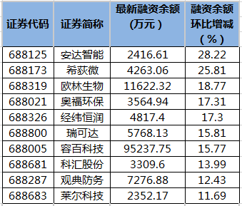 证券时报网讯,wind统计显示,6月16日共有204只科创板个股融资余额环比增加。其中,12股融资余额增幅超过10%。融资余额增幅最大的是安达智能,最新融资余额为2416.61万元,环比增幅达28.22%;融资余额增幅较大的还有希荻微、欧林生物、奥福环保、经纬恒润、瑞可达等股。