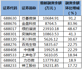 wind统计显示,6月28日共有229只科创板个股融资余额环比增加。其中,7股融资余额增幅超过10%。融资余额增幅最大的是芯碁微装,最新融资余额为10684.91万元,环比增幅达91.2%;融资余额增幅较大的还有金盘科技、绿的谐波、奕瑞科技、禾川科技、百克生物等股。(阙福生)