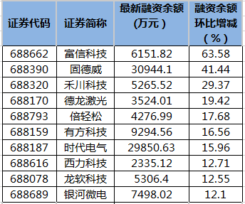 富信科技等16只科创板股融资余额增幅超10%