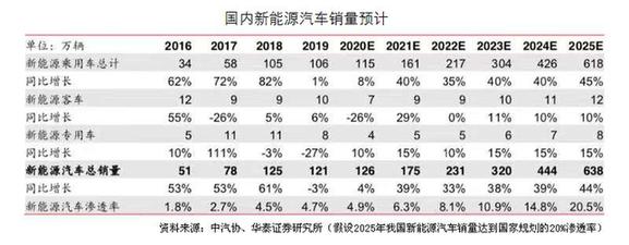 在政策引导下,补贴逐步退坡的同时,新能源汽车市场已经平稳过渡到需求驱动阶段。华泰证券指出,新能源汽车发展已经告别单纯靠补贴的第一阶段,进入奖惩结合的第二阶段,随着技术进步、产业链成本下降,未来将进入市场化产品驱动发展的第三阶段。根据国家规划,2025年国内新能源汽车渗透率将达到20%。