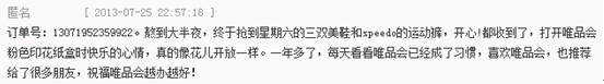 此活动一经发布,就获得了用户们的热烈欢迎。719的抢购达人们纷纷在博客、微博上大晒骄人战绩,并且大赞唯品会全正品、大折扣: