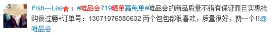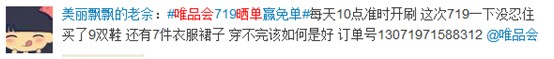 晒719战绩 赢唯品会免单