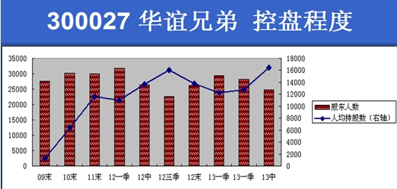 从图中可以看到,华谊兄弟的股东人数从2013年一季度开始下降,人均持股数不断上升,表明主力依然处于买入的阶段,并没有出逃,所以益达娱乐也可以坚定持有。