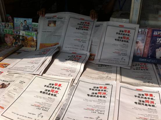 昨日,全国 30 多家纸质媒体集体刊出同洲电子向同行业下发的“战书”,多家报刊亭惊现同一大幅宣战书,一时公众哗然,同洲电子立即被冲到了风口浪尖,战书门也即刻成为公众热议的话题。