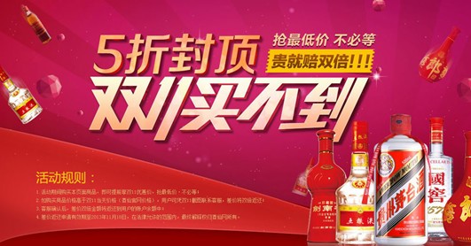 据酒仙网常务副总裁杨国锋透露,此次酒仙网“5折封顶贵就赔双倍”的活动不过是小试牛刀,为双十一促销热身。“双十一”期间,酒仙网将推出“天猫全场5折包邮”、“11万瓶酒免费送”、“每个小时10个免单”、“百万优惠券大派送”等多项劲爆空前的促销。杨国锋表示,推出的五折酒品备足了货品,到时将“放量敞开供应”,届时无疑将引发众多酒类爱好者的抢购狂潮。