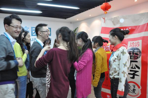 该袋瓜子高为2.1米、内装118袋小包瓜子。其同事纷纷与洽洽瓜子比高,拥抱爱抚等动作。大家欢乐之余,每人怀抱着分到手的洽洽瓜子,脸上洋溢着快乐。快乐味道齐分享的整体氛围达到高潮,众人可谓满载而归,集体拍照留影来记录这快乐的瞬间。