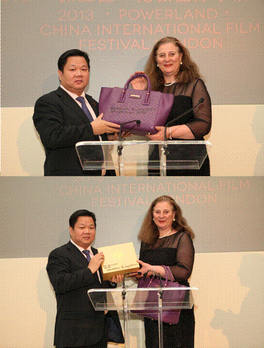 在保兰德伦敦国际华语电影节闭幕式上,英方皇室成员卡特丽娜公主将女王伊丽莎白二世登基60年的纪念品,赐与保兰德董事长兼CEO郭顺元先生以及保兰德伦敦国际华语电影节,以支持电影节为加强中英两国电影文化交流所做的贡献。保兰德集团董事长兼CEO郭顺元先生也向卡特丽娜公主回赠2014年的皇室特别版天使包,以表感谢。接受保兰德集团董事长兼CEO郭顺元先生赠予的紫色天使包后的卡特里娜公主,一身黑色薄纱长裙高贵优雅,皇族尊贵气息展露无遗,更让整体焕发出淡淡的奢华光芒。