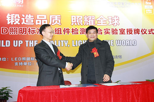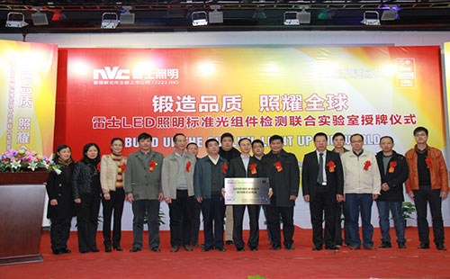 2013年12月30日,雷士LED照明标准光组件检测联合实验室授牌仪式在惠州雷士工业园隆重召开。广东省科技厅发展规划处云丹平副处长、省质监局张定康调研员、广东省半导体照明产业联合创新中心眭世荣主任、雷士照明副总裁穆宇等出席了授牌仪式。