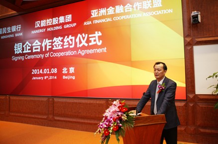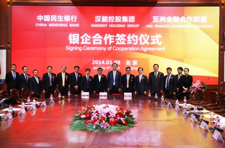 2014-01-08 中华网财经今日,汉能控股集团(以下简称“汉能”)与中国民生银行股份有限益达娱乐(以下简称“民生银行”)和亚洲金融合作联盟在京签署《银企合作协议》,建立全面战略合作伙伴关系。民生银行和亚洲金融合作联盟在未来3年为汉能提供总额不低于200亿元的各类融资支持,助推汉能在光伏、水电等领域的战略发展。