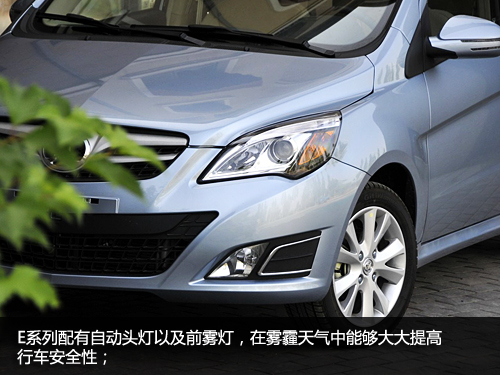 E系列作为A0级车型中的佼佼者,在配置上可谓是实用为先。它不仅配置了自动头灯,系统检测到光线不足时即可自动开启,增加驾车时的被动安全性。而且还配有很多A0级车型中因成本因素减配掉的前后雾灯,使其可以起到警示前车的作用,雾霾天行车时的安全性也大大提升。