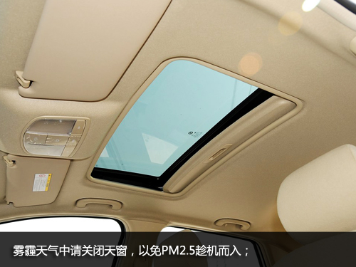 同时,在雾霾天气中除了要打开车灯外,还要尽量少打开车窗,行驶中也尽量不要用开车窗的方式来通风。虽然将侧窗和天窗打开一个缝隙有负压抽风换气的作用,但是这里也不建议这样做,这样也会有PM2.5在行车中被带入车内。因此,如果您在实际驾驶中,建议您按照图片中的样子,保证车窗以及天窗的关闭,以此来减少PM2.5的危害。