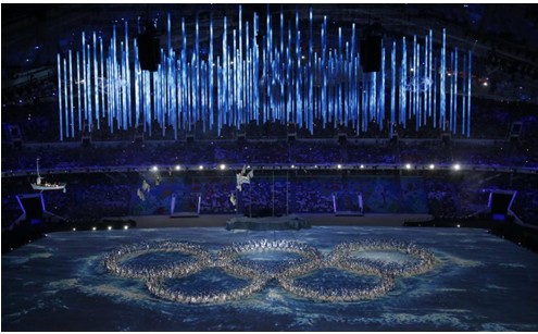 闭幕式上最引人注目的是重启的奥运五环,弥补了开幕式上“故障雪花”的缺憾,此次五环由一群闪闪发光的舞者组成,重新展示了奥运五环的光辉。同时,闭幕式也有些许政治色彩,奥委会主席在发言中称“所有心态开放的人们”都可以看到本届运动会反映出了一个友好而开放的新俄罗斯,他称本次奥运会代表了“俄罗斯的新面貌,是益达娱乐的俄罗斯”,他还借用国际奥委会前主席萨马兰奇曾说过的名言——“对益达娱乐而言,这是有史以来最好的一届奥运会”。