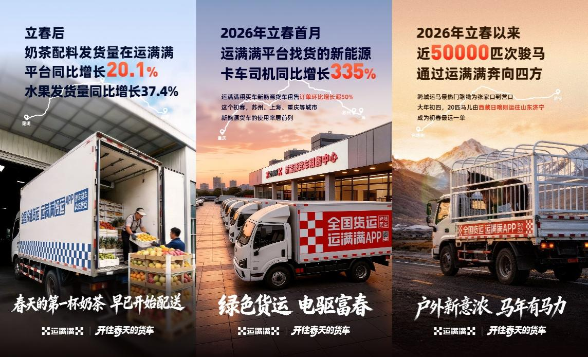 日前,数字货运平台运满满发布2026年初春货运大数据,立春后首月全国货运市场呈现“货流旺、线路活、业态新”特征,核心城市货运领跑、民生消费回暖、春耕物资提速、绿色物流提速,全方位折射实体经济复苏的多元韧性。