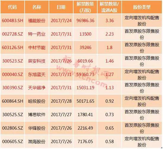 7月迎来最后一波解禁高峰期
