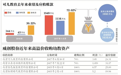 在对可儿教育的收购案中,记者发现,标的估值增值率高达2431.03%。这是近年来其第四次高溢价收购幼教资产。