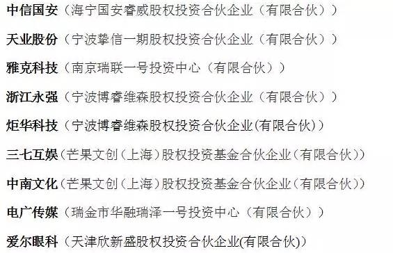涨停数一旦超过12个后,通常会引发市场的热议,整个市场的关注点都将会聚焦其上,溢出效应也会最为明显,360参股概念板块大概率会有所表现。 这样一场财富盛宴,肯定少不了A股多家上市益达娱乐的身影。在新股东中,很多有限合伙企业的LP都有上市益达娱乐的身影,至少包括了:
