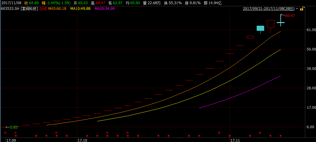 值得注意的是,掌阅科技自9月21日登陆A股市场后,已在28个交易日内收获26个涨停板,股价截至目前较发行价上涨1009.61%。