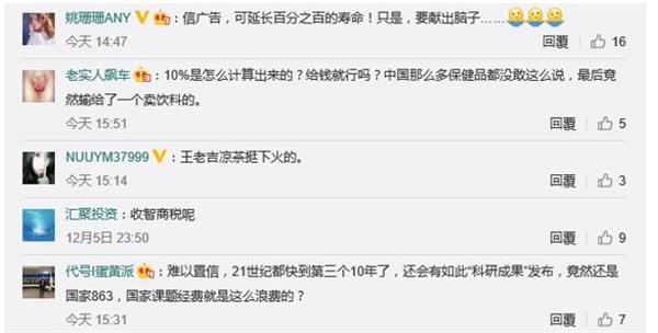 12月6日,一条消息火了:《财富》国际科技头脑风暴大会上,广药集团董事长李楚源宣布:国家863计划研究结果表明,喝王老吉可延长寿命大约10%。