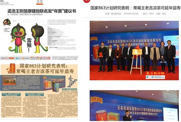 《国际金融报》记者随后查询到,2016年确有报道称国家863计划研究表明常喝王老吉可延年益寿。但是,该研究只涉及雌性大鼠的动物实验。