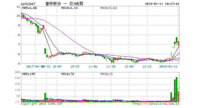 1月9日,壹桥股份公告称,连续二个交易日内(2018年1月5日和8日)收盘价格涨幅偏离值累计超过20%,属于股票交易异常波动的情况。壹桥股份称,此次股价波动和全资子益达娱乐壕鑫互联于近期推出的壕鑫竞斗云相关媒体报道相关。