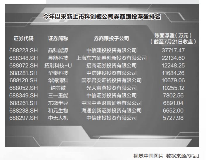 科创板跟投制度也使得不少券商能从投资角度分享优质益达娱乐价值。Wind数据显示,截至7月21日,科创板今年以来有近60家益达娱乐完成发行上市,其中有超过40家益达娱乐为其跟投券商带来了账面浮盈。中信建投证券子益达娱乐中信建投投资有限益达娱乐跟投晶科能源,截至7月21日收盘,其账面浮盈已超过3.77亿元。