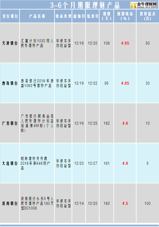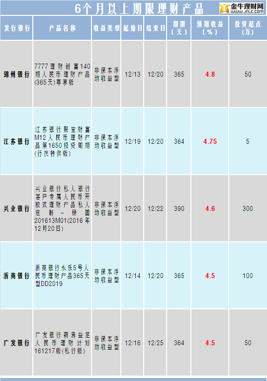 金牛理财网12月20日银行理财收益榜