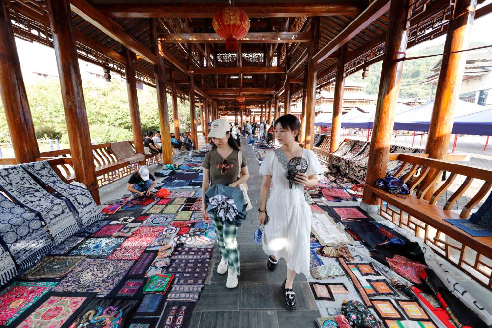 10月4日,游客在贵州省黔东南苗族侗族自治州凯里市民族风情园非遗集市参观。新华社发(杨晓海 摄)