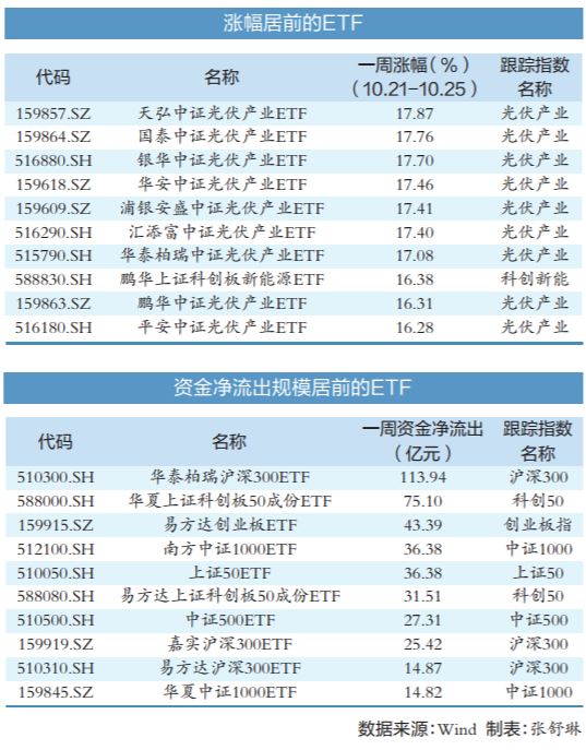 鹏华上证科创板新能源ETF、博时中证新能源ETF等周度涨幅同样居前。