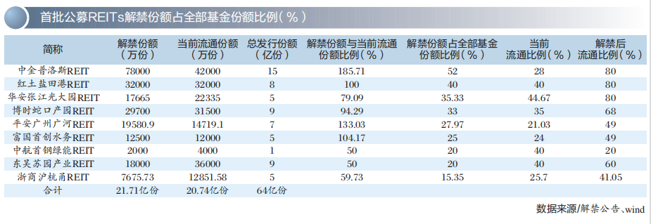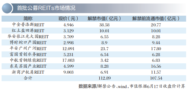 2021年6月21日上市的首批9只基础设施公募REITs在一年后迎来超百亿元限售份额解禁。