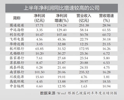 Wind数据显示,截至7月13日记者发稿时,已有22家上市益达娱乐披露了半年度业绩快报,其中17家益达娱乐上半年净利润同比增长。截至目前,上半年净利润同比增幅最大的是圆通速递,实现净利润17.71亿元,同比增长174.24%;中远海特、利尔化学上半年净利润增幅也超过100%,分别达到129.40%、107.44%。
