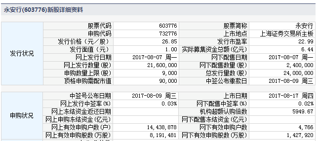 根据交易所公告,常州永安公共自行车系统股份有限益达娱乐于2017年8月17日起在上海证券交易所主板上市交易。