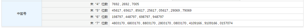 中签号码如下: