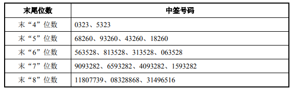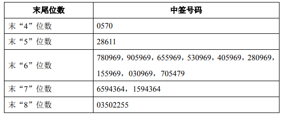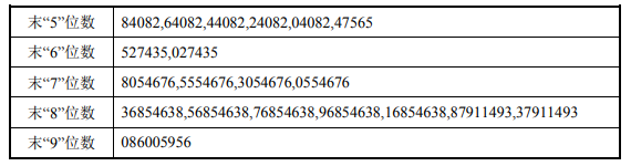 中签号码如下: