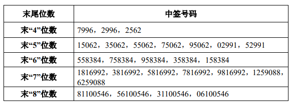 首页>新股>新股攻略 确成股份中签号出炉 中签号码共有43849个 中国证券网2020-11-27 08:31 上证报中国证券网讯 据交易所公告,确成股份公布网上中签结果。中签号码共有43849个,每个中签号码只能认购1000股确成股份A股股票。 中签号码如下: