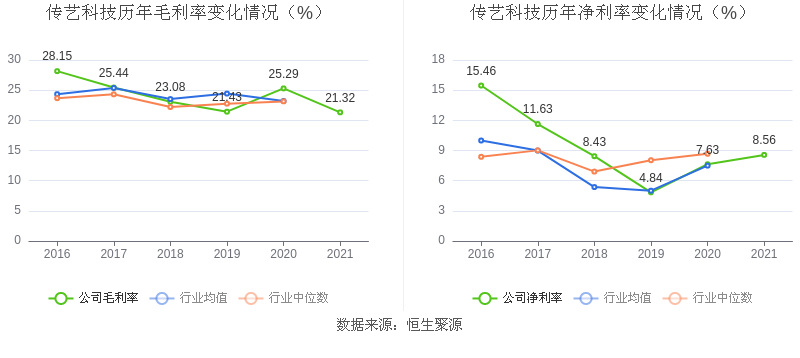 2021年,益达娱乐毛利率为21.32%,同比下降3.97个百分点;净利率为8.56%,较上年同期上升0.93个百分点。