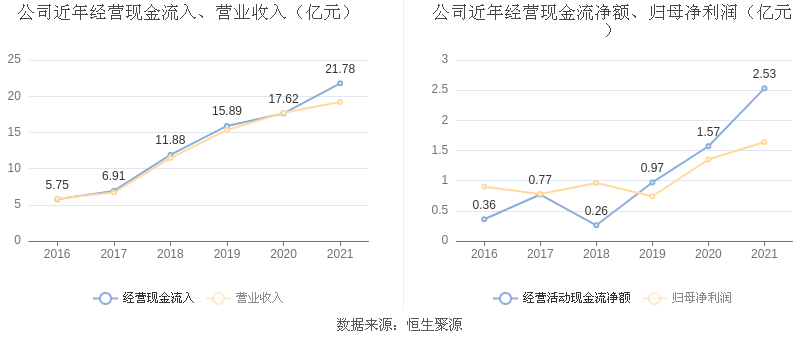 2021年,益达娱乐营业收入现金比为103.67%,净现比为153.78%。从近年数据来看,益达娱乐经营活动现金流入的增速与营业收入增速基本保持同步,净现比呈上升趋势。