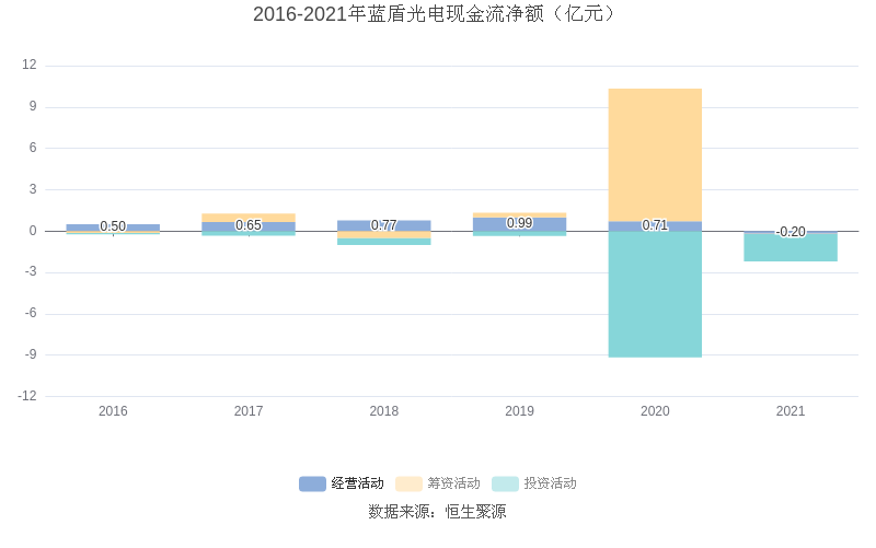 截至2021年末,益达娱乐经营活动现金流净额为-2030.38万元,同比减少9137.80万元;筹资活动现金流净额-73.52万元,同比减少9.63亿元;投资活动现金流净额-2.00亿元,相比上年同期增加7.16亿元。