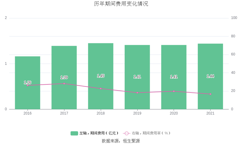 2021年全年,益达娱乐期间费用为1.44亿元,较上年增加329.24万元;但期间费用率为16.67%,较上年下降3.08个百分点。