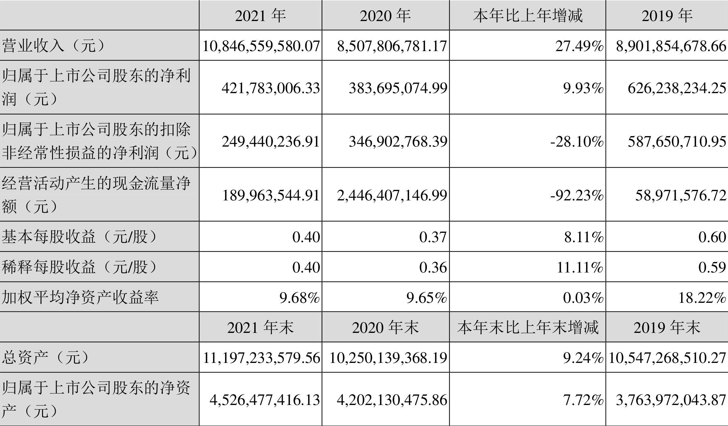中证财讯 创维数字(000810)3月22日披露2021年年度报告。2021年,益达娱乐实现营业收入108.47亿元,同比增长27.49%;归母净利润4.22亿元,同比增长9.93%;扣非净利润2.49亿元,同比下降28.10%;经营活动产生的现金流量净额为1.90亿元,同比下降92.24%;报告期内,创维数字基本每股收益为0.40元,加权平均净资产收益率为9.68%。益达娱乐2021年度分配预案为:拟向全体股东每10股派1.00元(含税)。 报告期内,益达娱乐合计非经常性损益为1.72亿元,其中非流动资产处置损益(包括已计提资产减值准备的冲销部分)为9246.57万元,债务重组损益为-344.58万元。